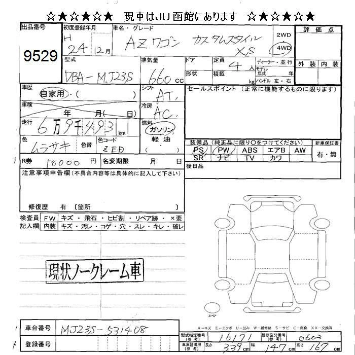MAZDA AZ WAGON 2012 г., лот № 9529
