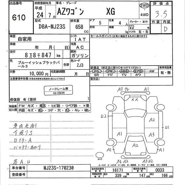 MAZDA AZ WAGON 2012 г., лот № 610