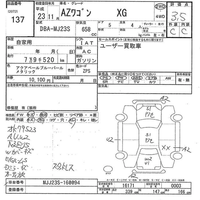 MAZDA AZ WAGON 2011 г., лот № 137
