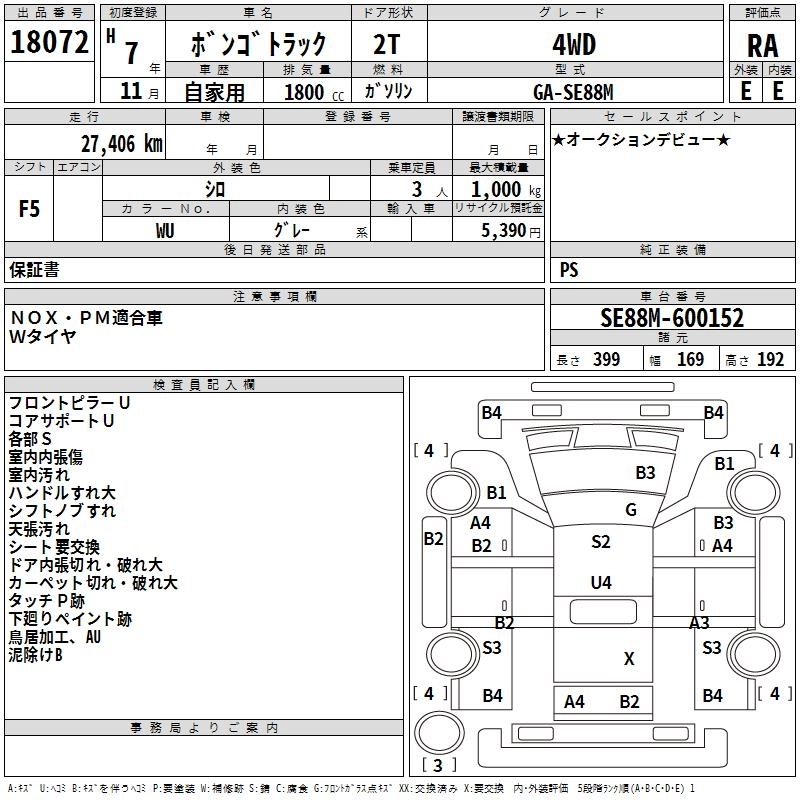 MAZDA BONGO TRUCK 1995 г., лот № 18072