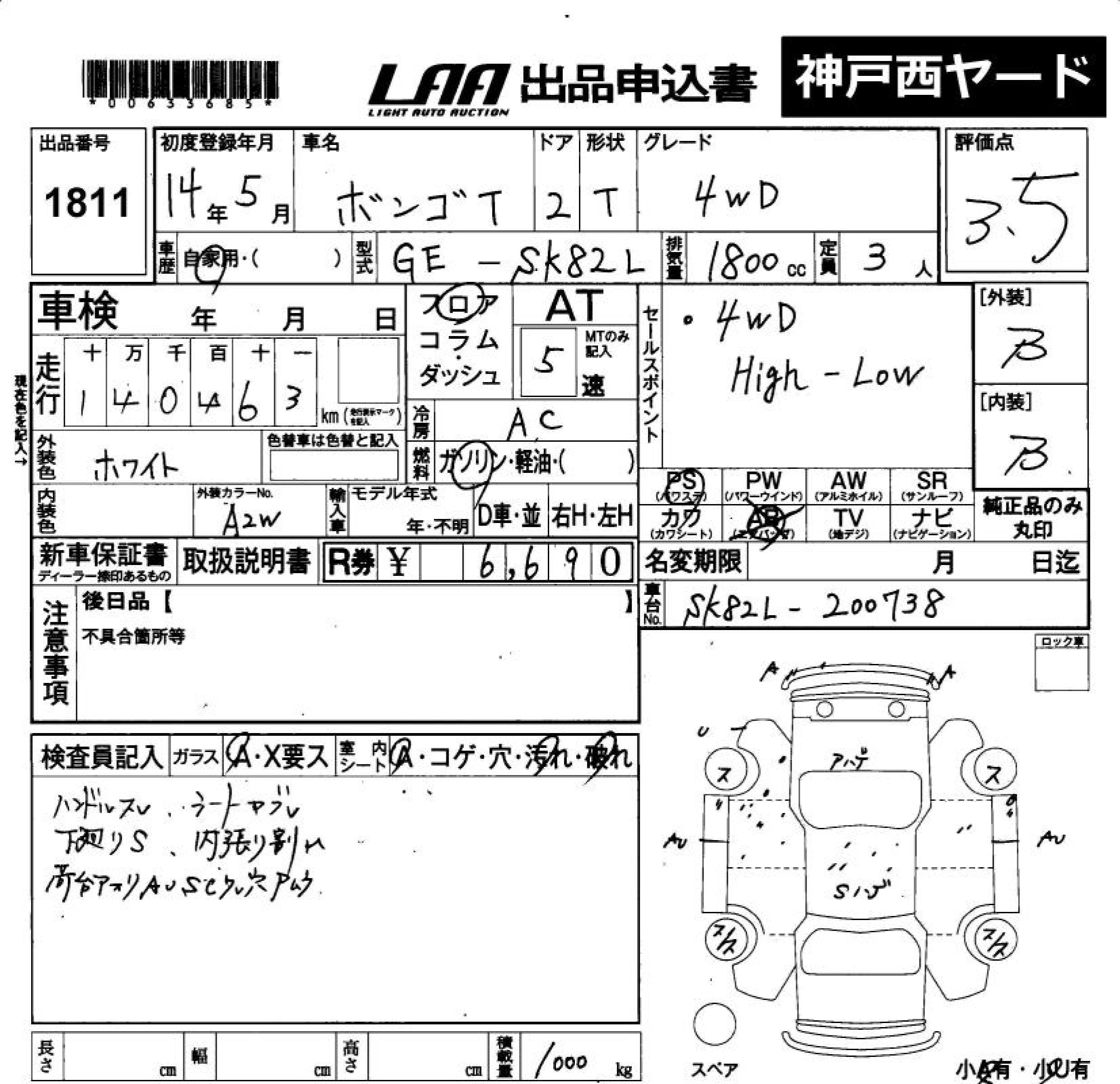 Статус не продан Лот 1811 Аукцион LAA Okayama Дата аукциона 23.01.2026
