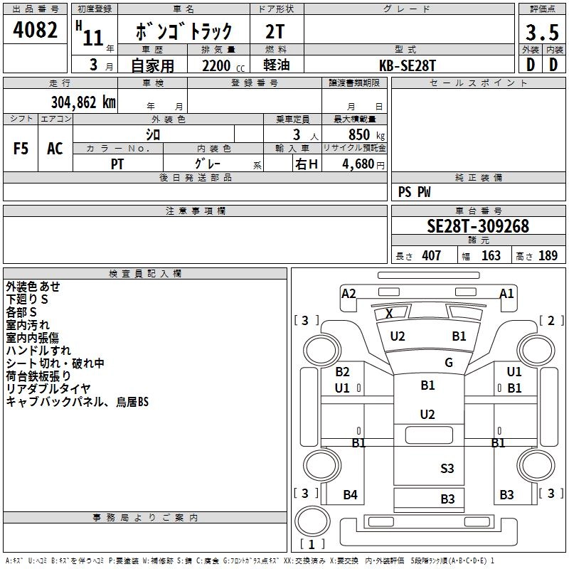 MAZDA BONGO TRUCK 1999 г., лот № 4082