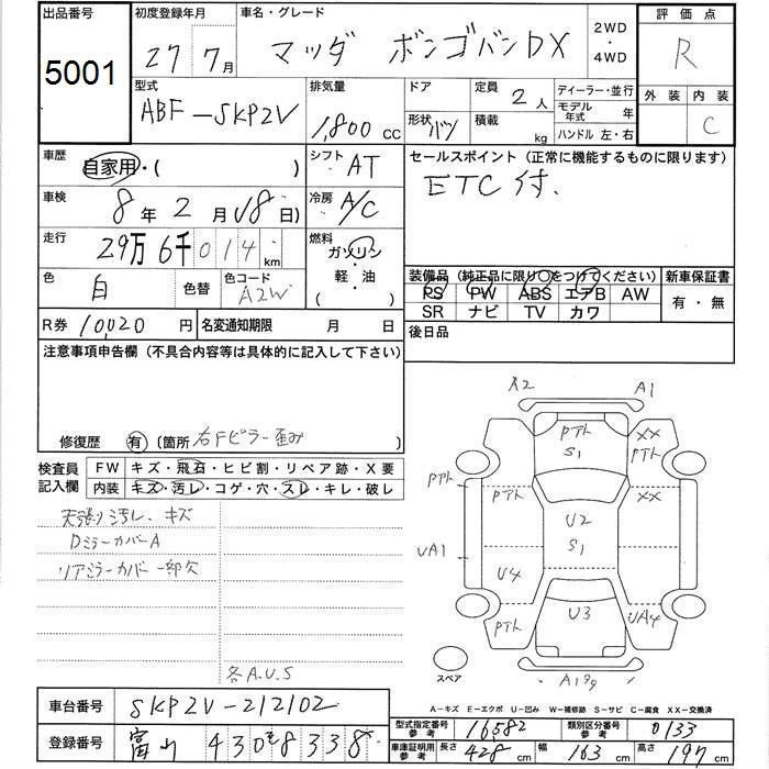 MAZDA BONGO VAN 2015 г., лот № 5001