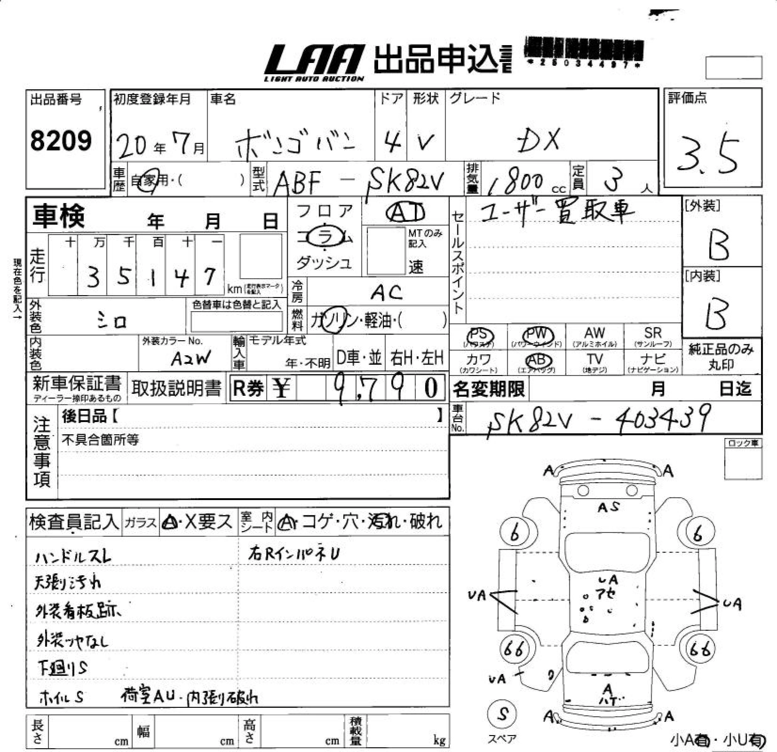 Год выпуска2008 Пробег 35 000 км КузовSK82V КомплектацияDX