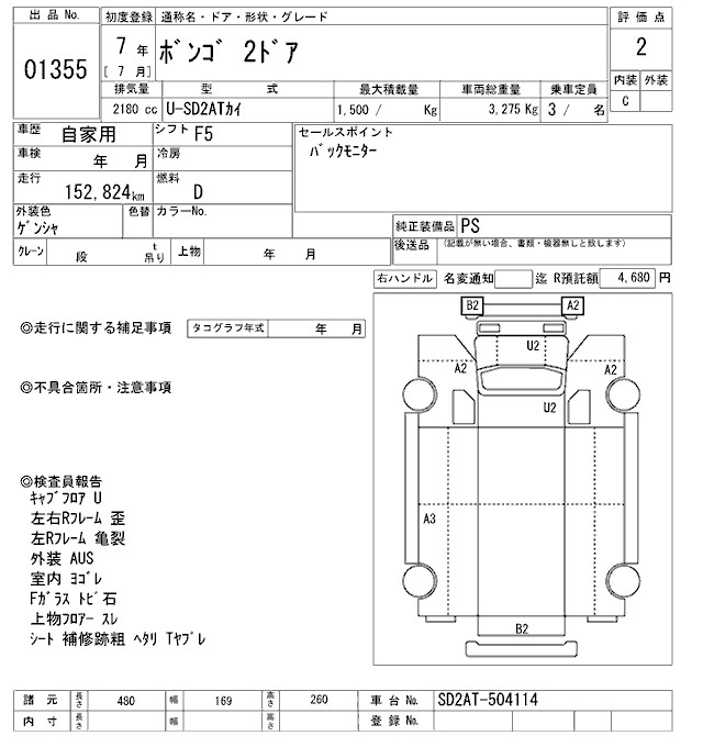MAZDA BONGO 1995 г., лот № 1355
