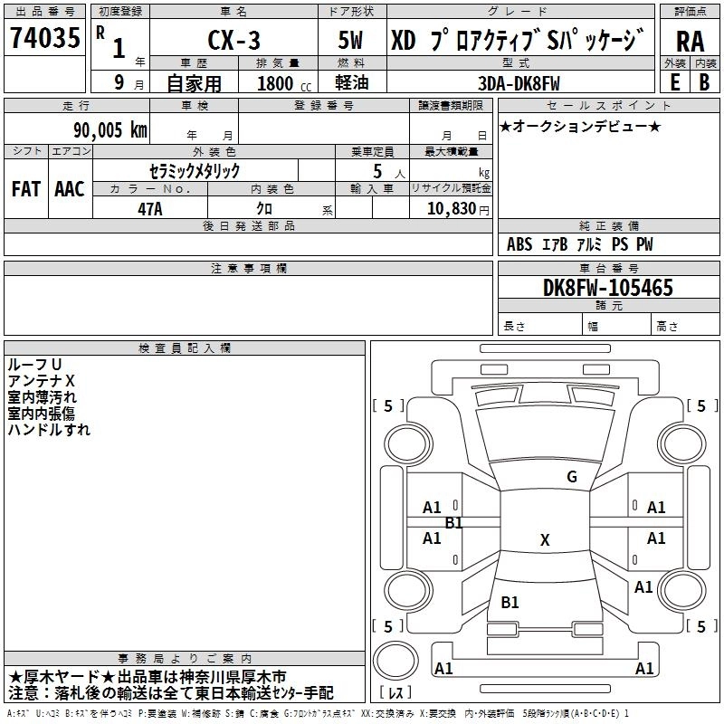 MAZDA CX-3 2019 г., лот № 74035