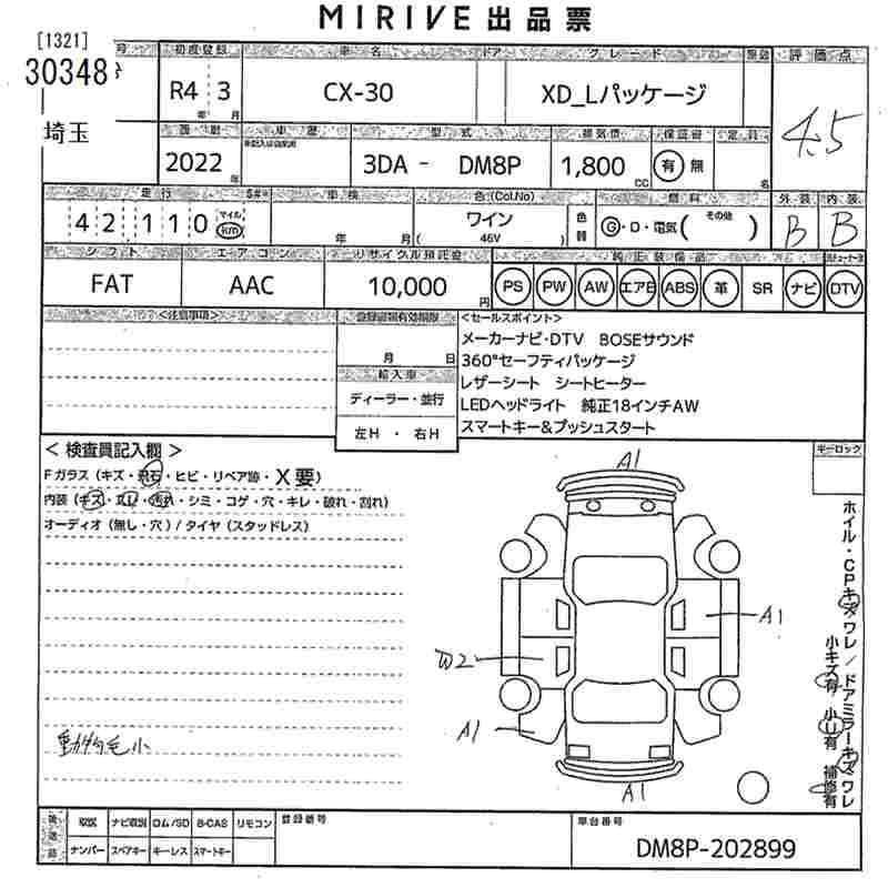 Статус выставлен на аукцион Лот 30348 Аукцион MIRIVE Saitama Дата аукциона 11.03.2026