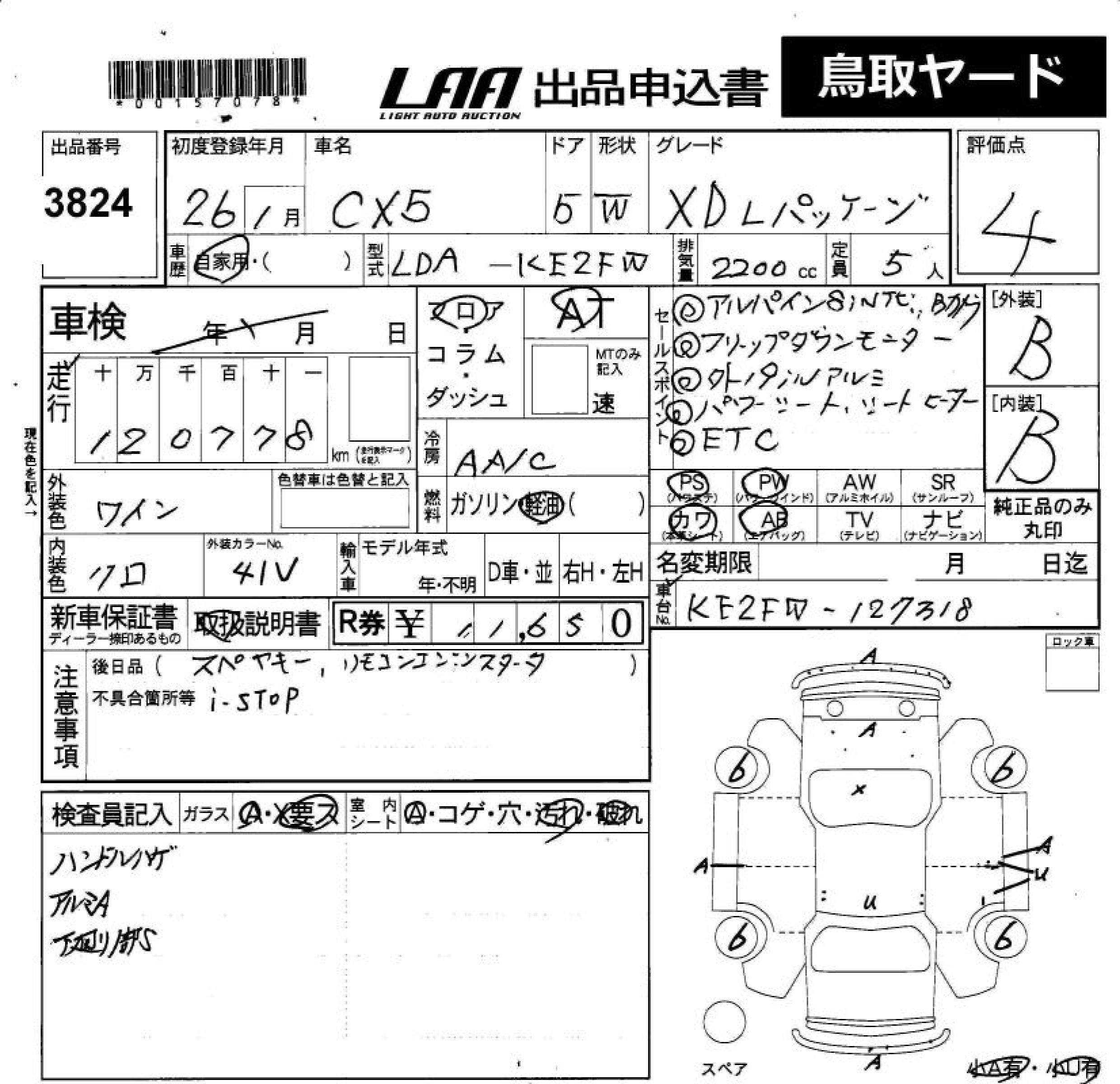 MAZDA CX-5 2014 г., лот № 3824