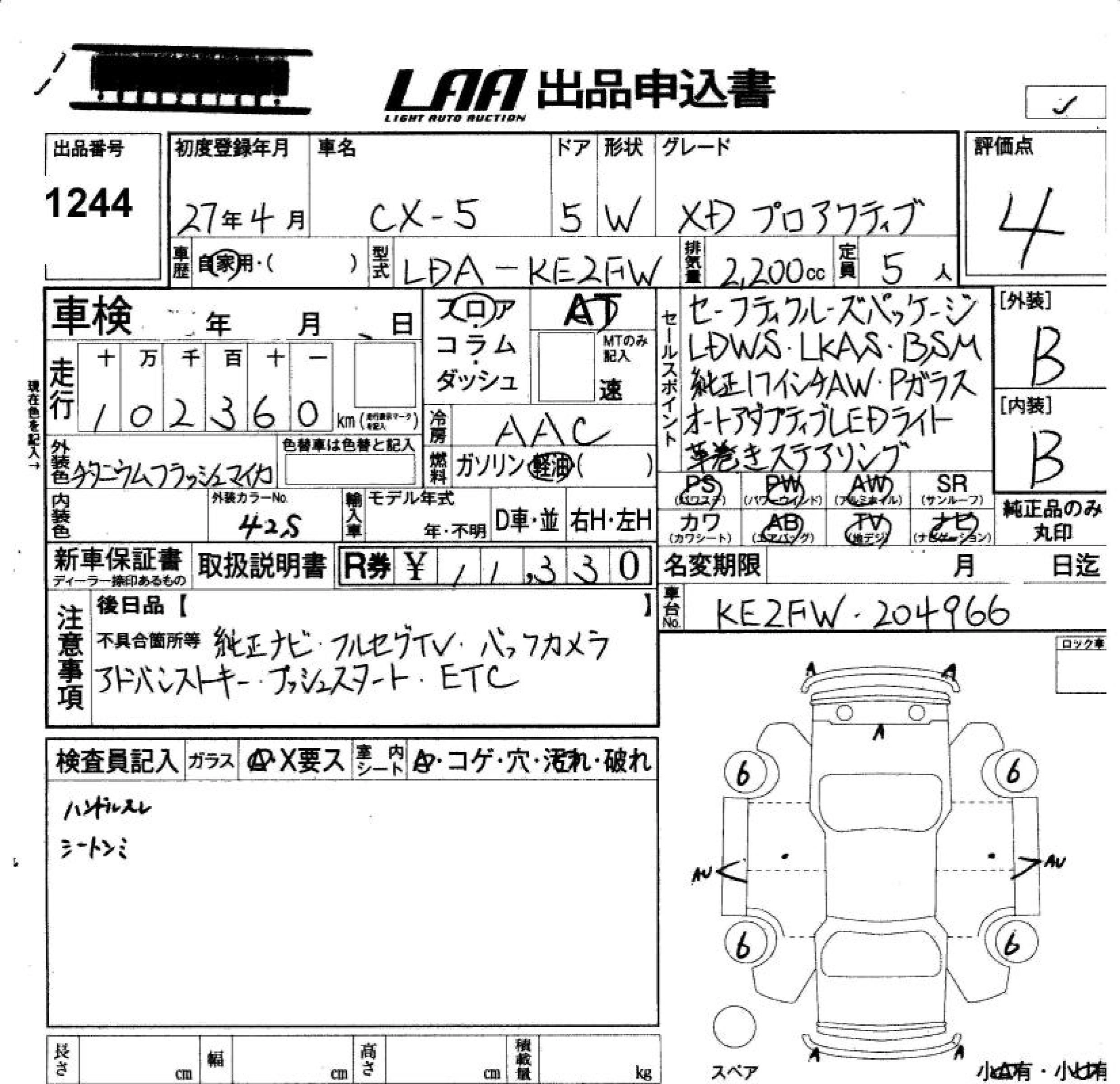 MAZDA CX-5 2015 г., лот № 1244