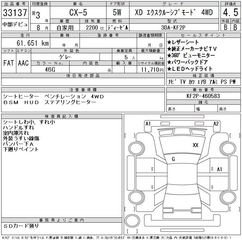 Год выпуска2021 Пробег 62 000 км КузовKF2P КомплектацияXD EXCLUSIVE MODE 4WD