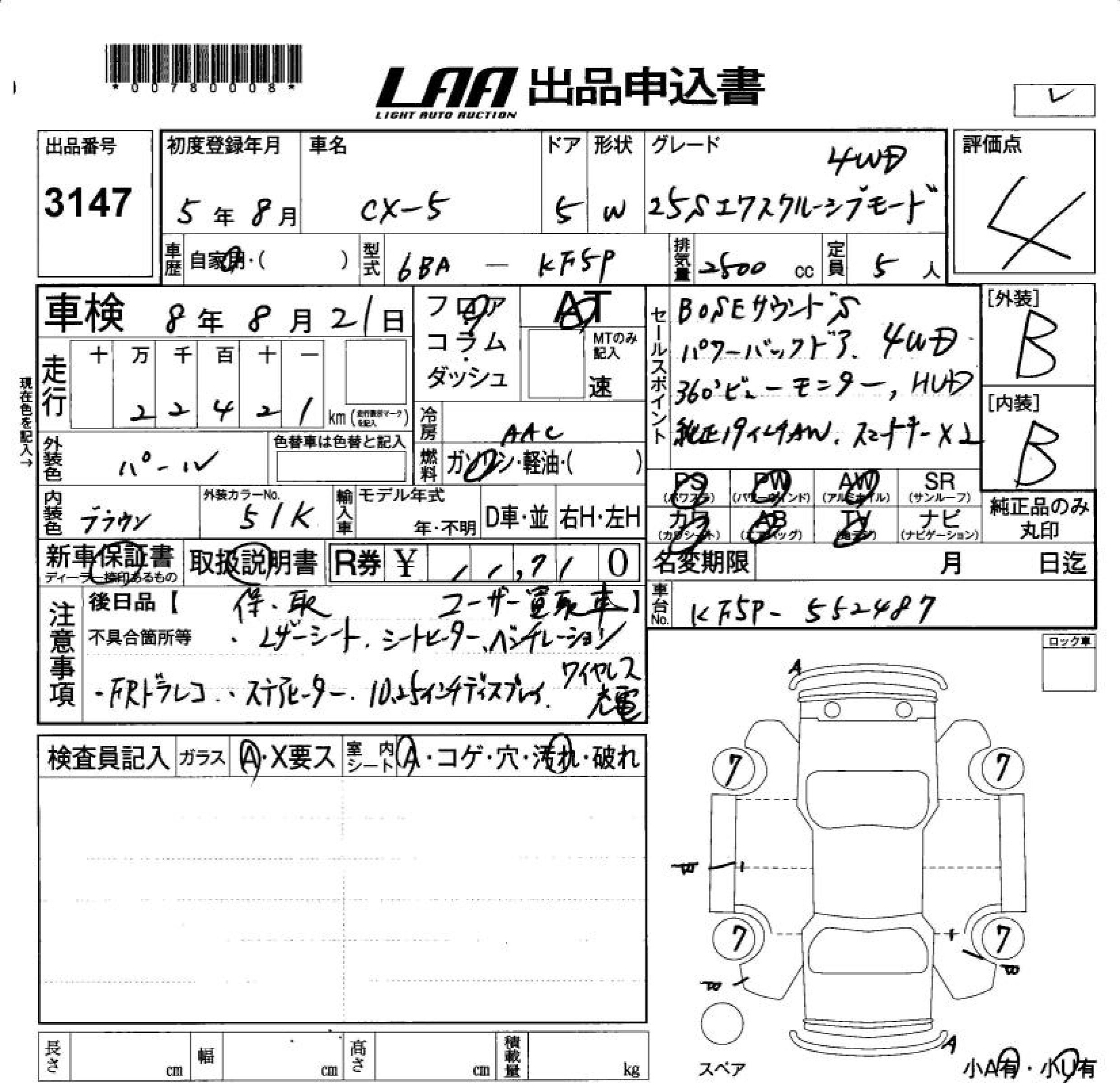 Статус выставлен на аукцион Лот 3147 Аукцион LAA Okayama Дата аукциона 19.12.2025