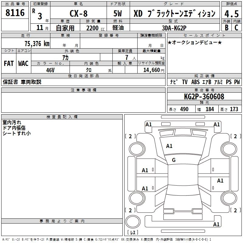 Статус выставлен на аукцион Лот 8116 Аукцион TAA Chubu Дата аукциона 12.03.2026