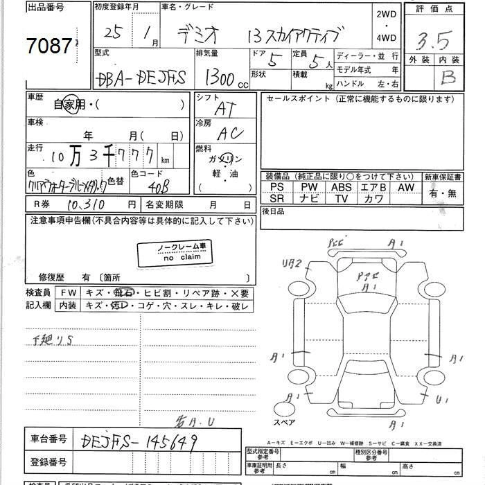 MAZDA DEMIO 2013 г., лот № 7087