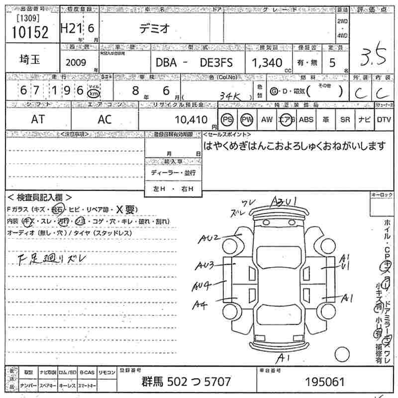 MAZDA DEMIO 2009 г., лот № 10152