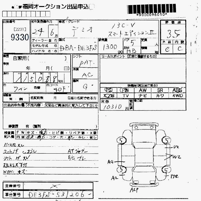 Статус не продан Лот 9330 Аукцион JU Fukuoka Дата аукциона 23.01.2026
