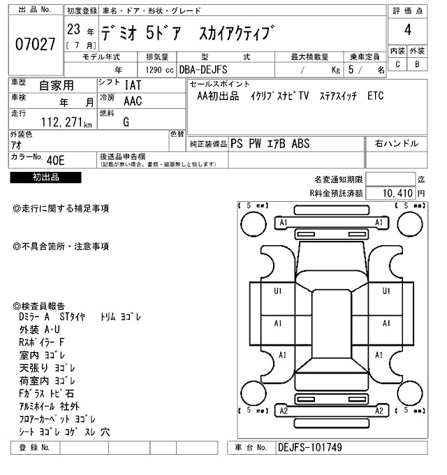 MAZDA DEMIO 2011 г., лот № 7027