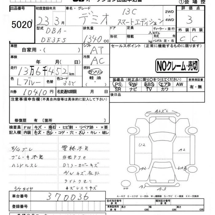 MAZDA DEMIO 2011 г., лот № 5020