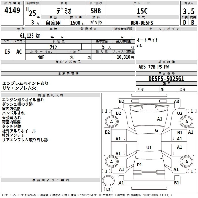MAZDA DEMIO 2013 г., лот № 4149