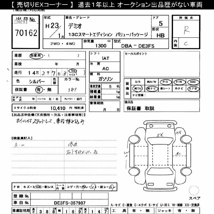 MAZDA DEMIO 2011 г., лот № 70162