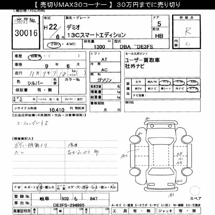 MAZDA DEMIO 2010 г., лот № 30016