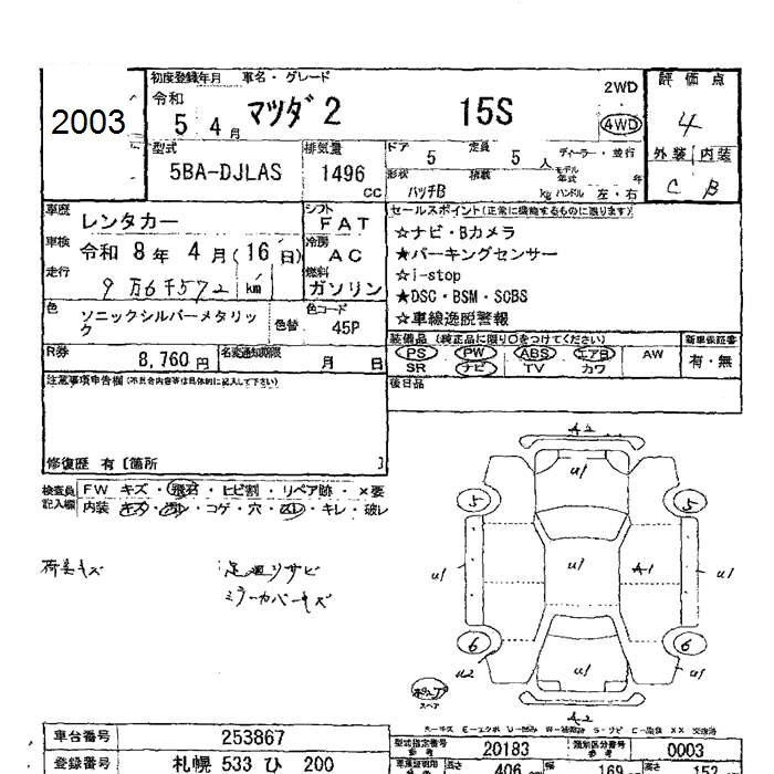 Статус продан Лот 2003 Аукцион JU Hokkaido Дата аукциона 23.01.2026