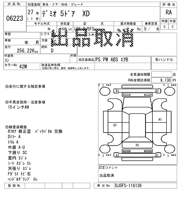 Статус не продан Лот 6223 Аукцион ARAI Sendai Дата аукциона 23.01.2026