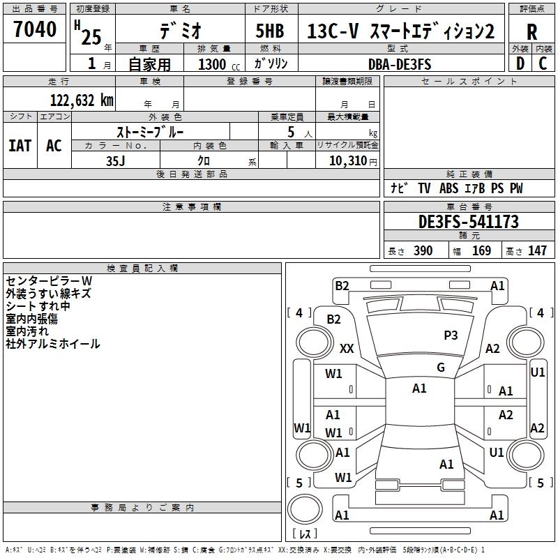 Год выпуска2013 Пробег 123 000 км КузовDE3FS Комплектация13C-V SMART EDITION 2