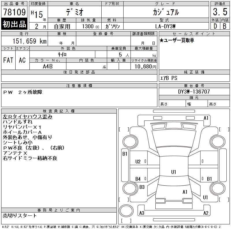MAZDA DEMIO 2003 г., лот № 78109