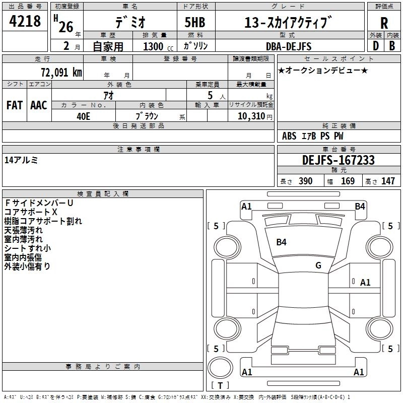 MAZDA DEMIO 2014 г., лот № 4218