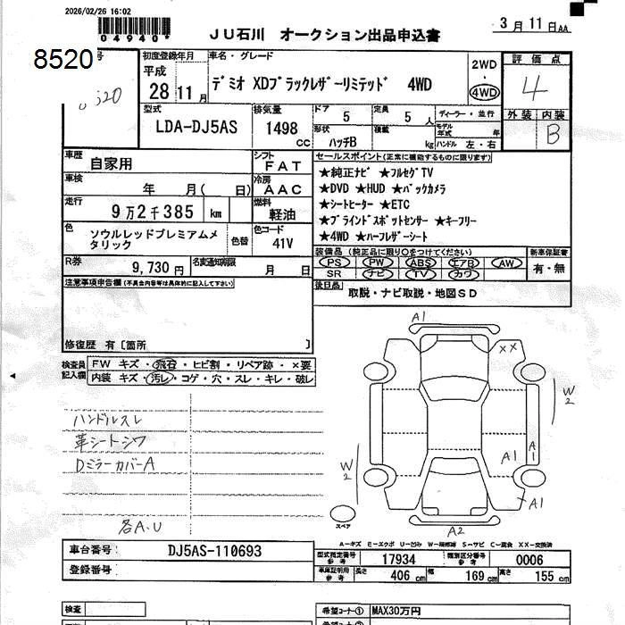 Статус выставлен на аукцион Лот 8520 Аукцион JU Ishikawa Дата аукциона 11.03.2026