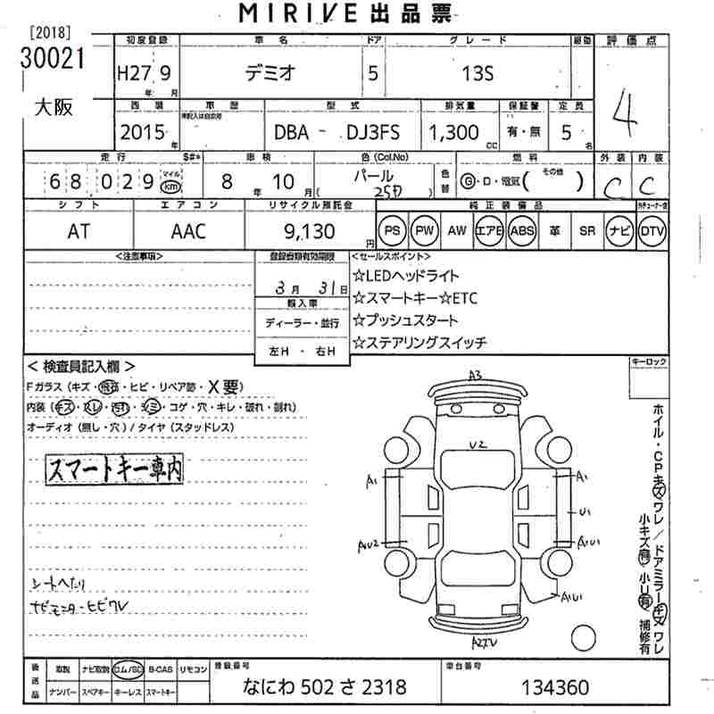 MAZDA DEMIO 2015 г., лот № 30021
