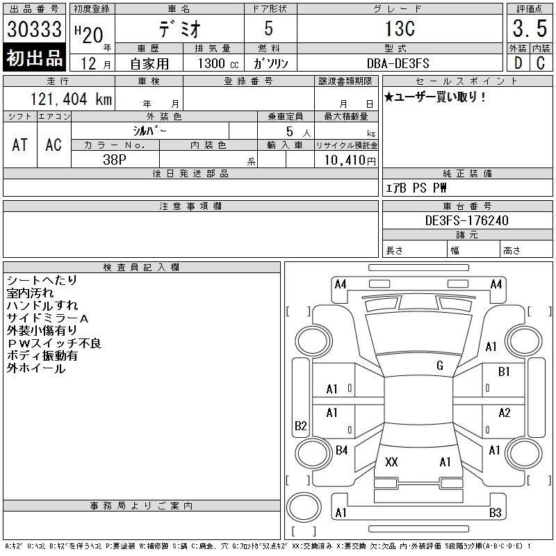 Статус выставлен на аукцион Лот 30333 Аукцион CAA Chubu Дата аукциона 11.03.2026