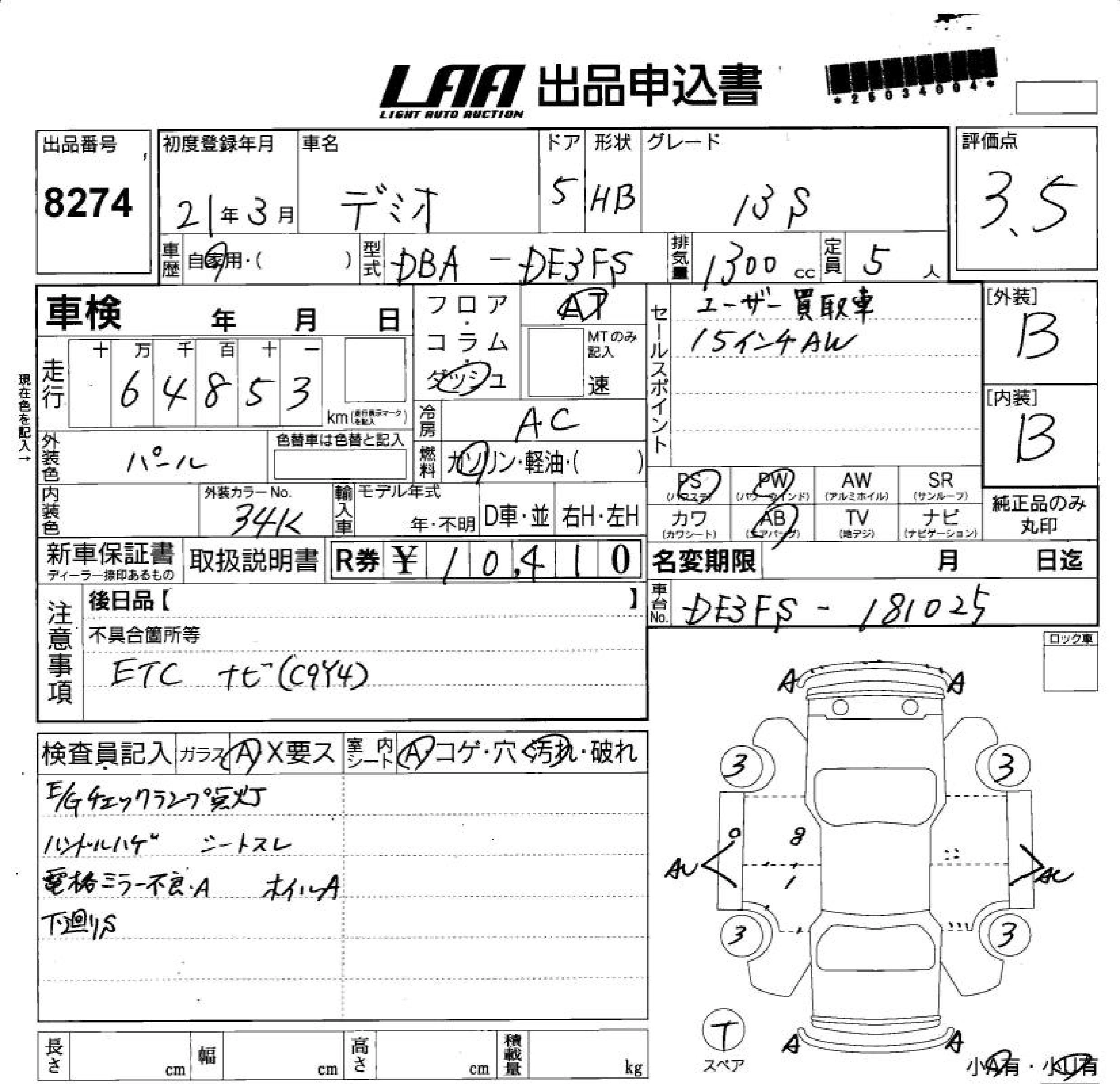 Статус выставлен на аукцион Лот 8274 Аукцион LAA Shikoku Дата аукциона 11.03.2026