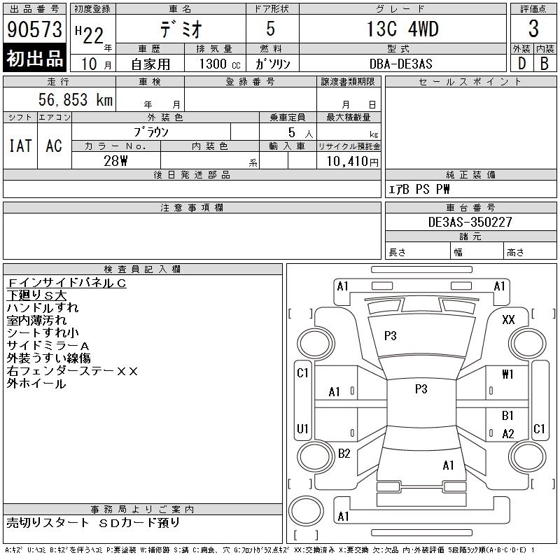 MAZDA DEMIO 2010 г., лот № 90573