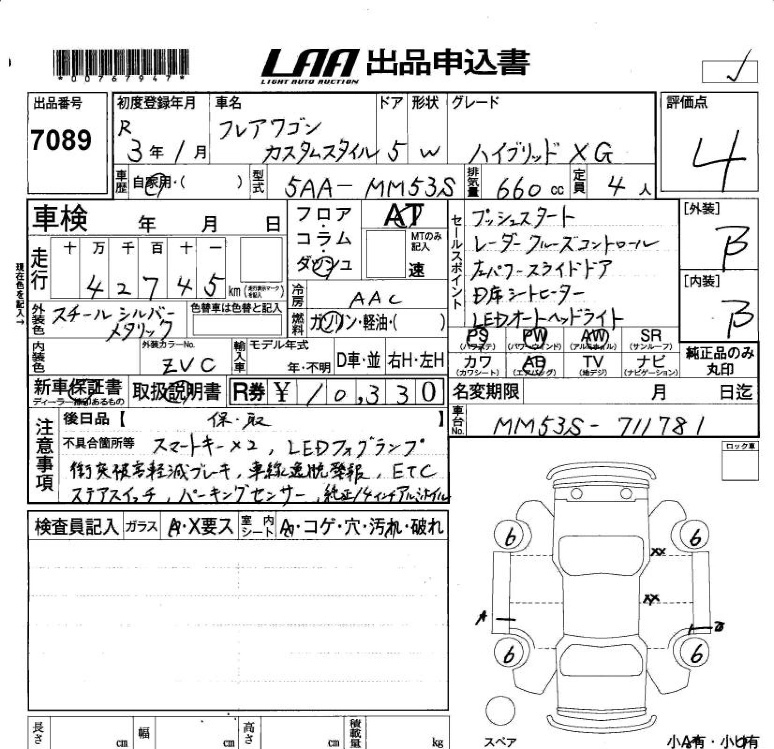 Статус не продан Лот 7089 Аукцион LAA Okayama Дата аукциона 23.01.2026