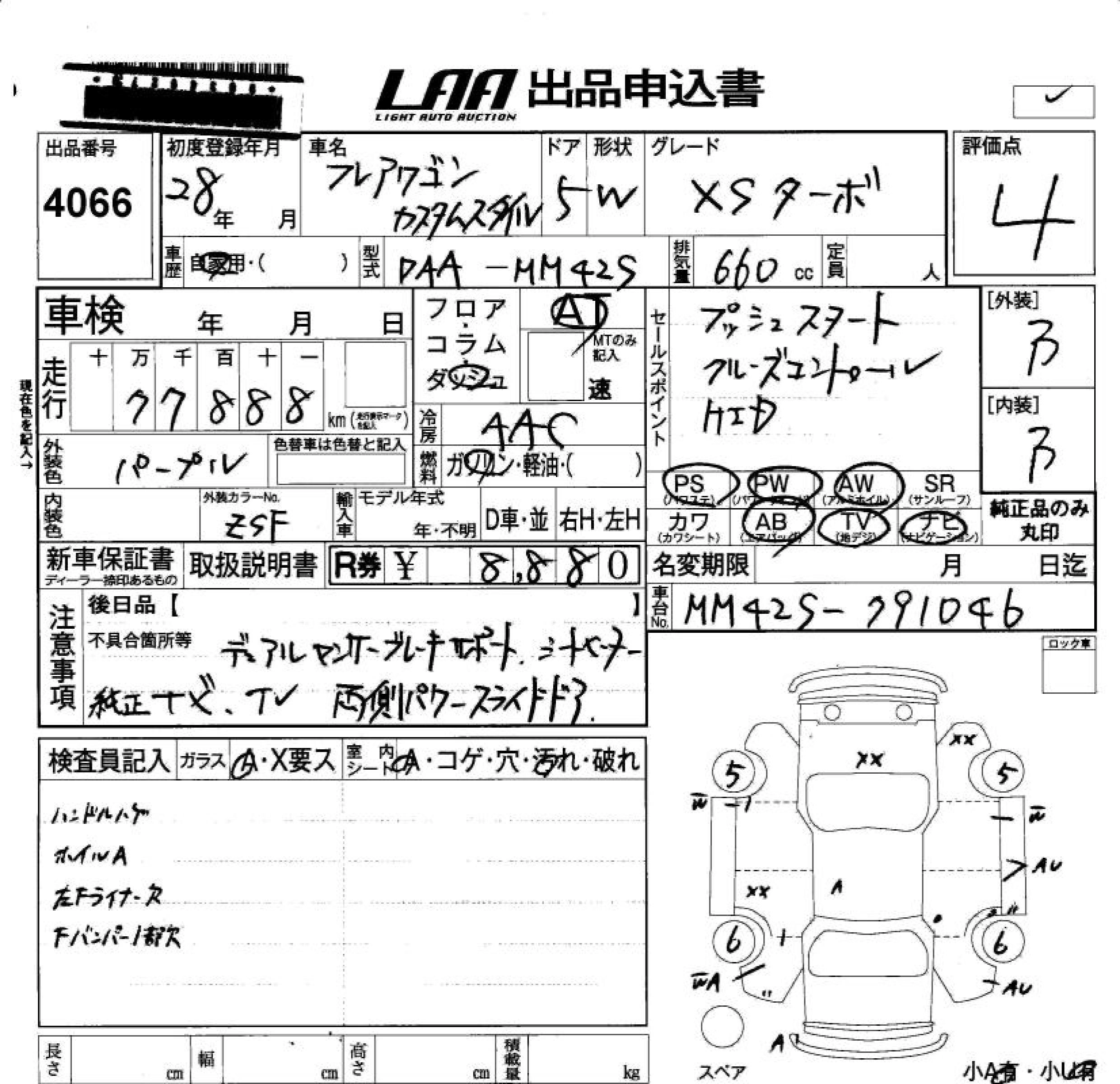 Статус не продан Лот 4066 Аукцион LAA Okayama Дата аукциона 23.01.2026
