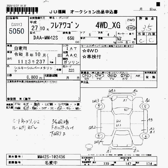 Статус не продан Лот 5050 Аукцион JU Fukuoka Дата аукциона 23.01.2026