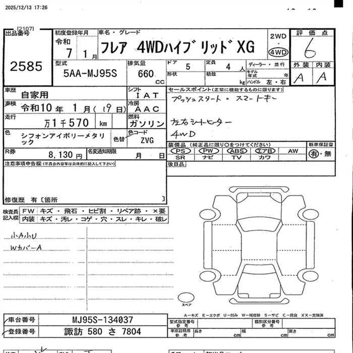 Статус не продан Лот 2585 Аукцион JU Nagano Дата аукциона 16.12.2025