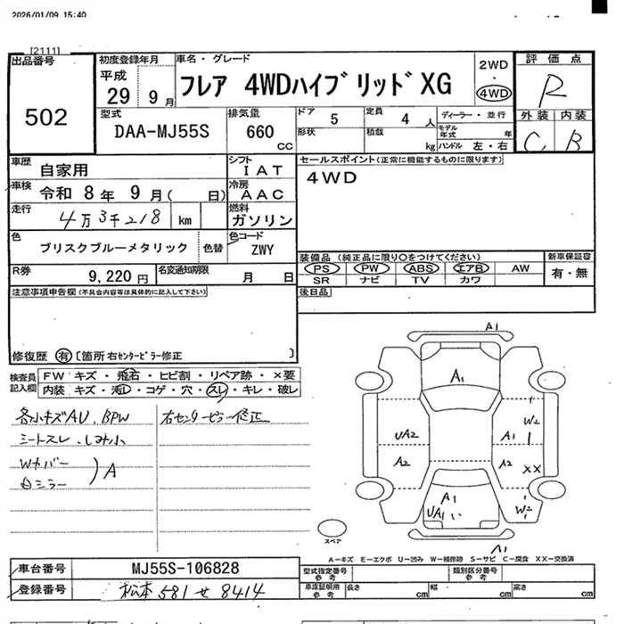 Статус выставлен на аукцион Лот 502 Аукцион JU Nagano Дата аукциона 27.01.2026