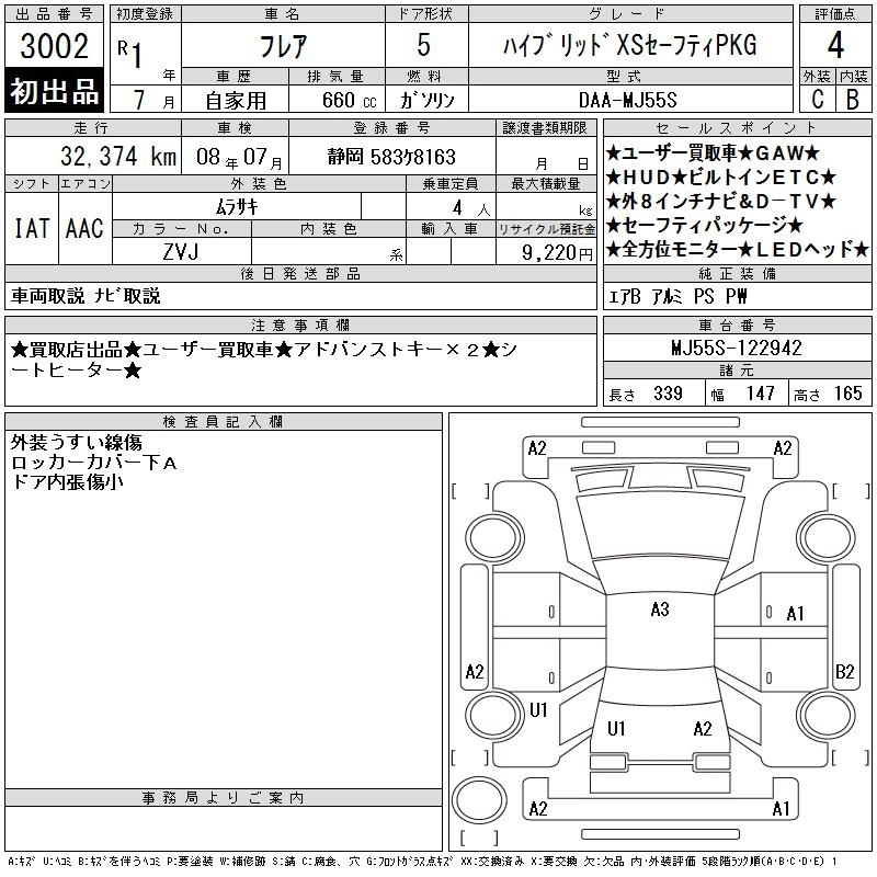 Статус выставлен на аукцион Лот 3002 Аукцион CAA Chubu Дата аукциона 11.03.2026