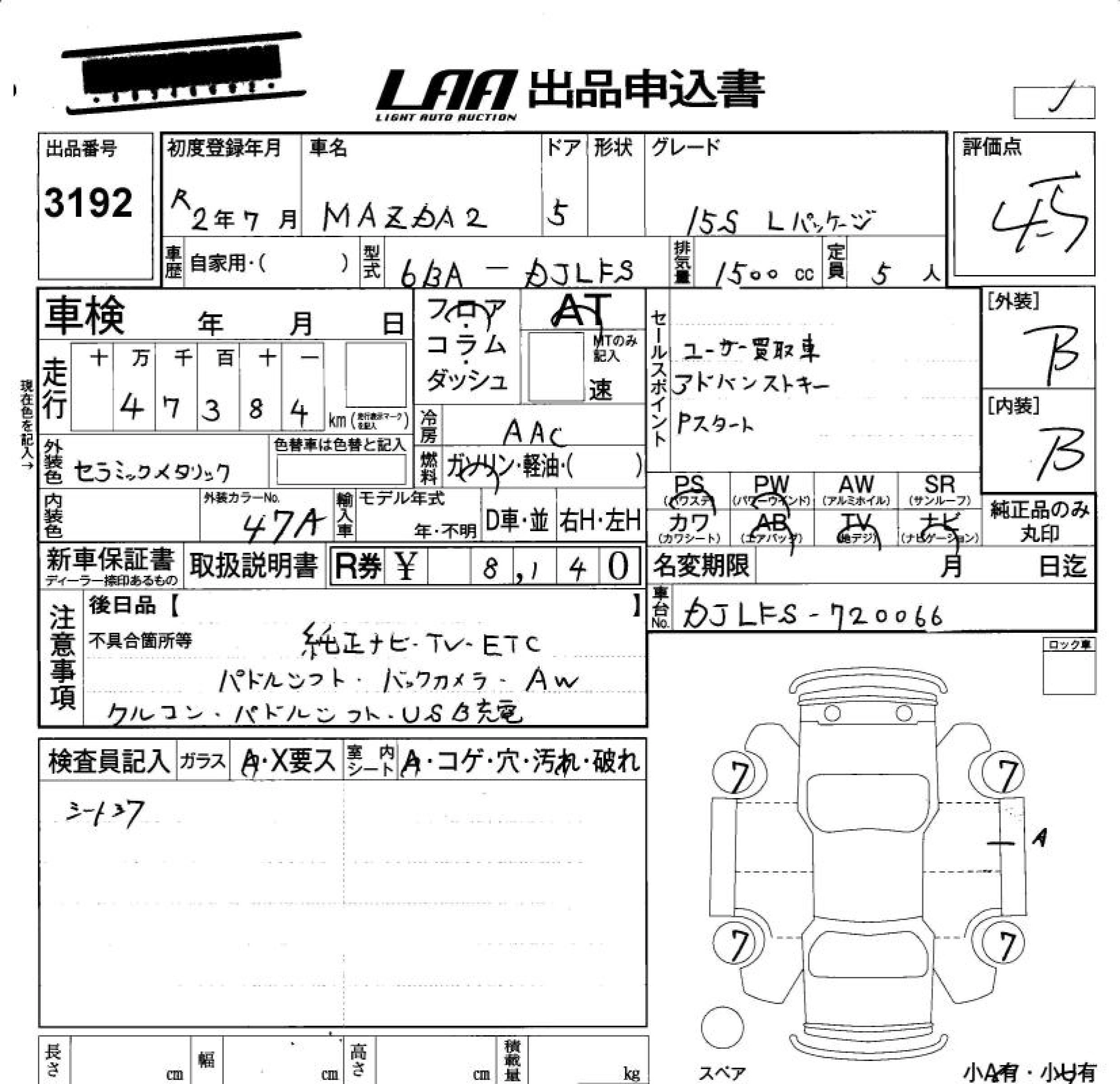 Статус выставлен на аукцион Лот 3192 Аукцион LAA Okayama Дата аукциона 19.12.2025