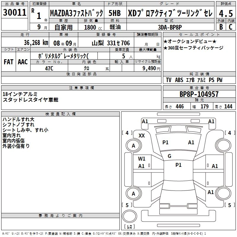 MAZDA MAZDA3 FASTBACK 2019 г., лот № 30011