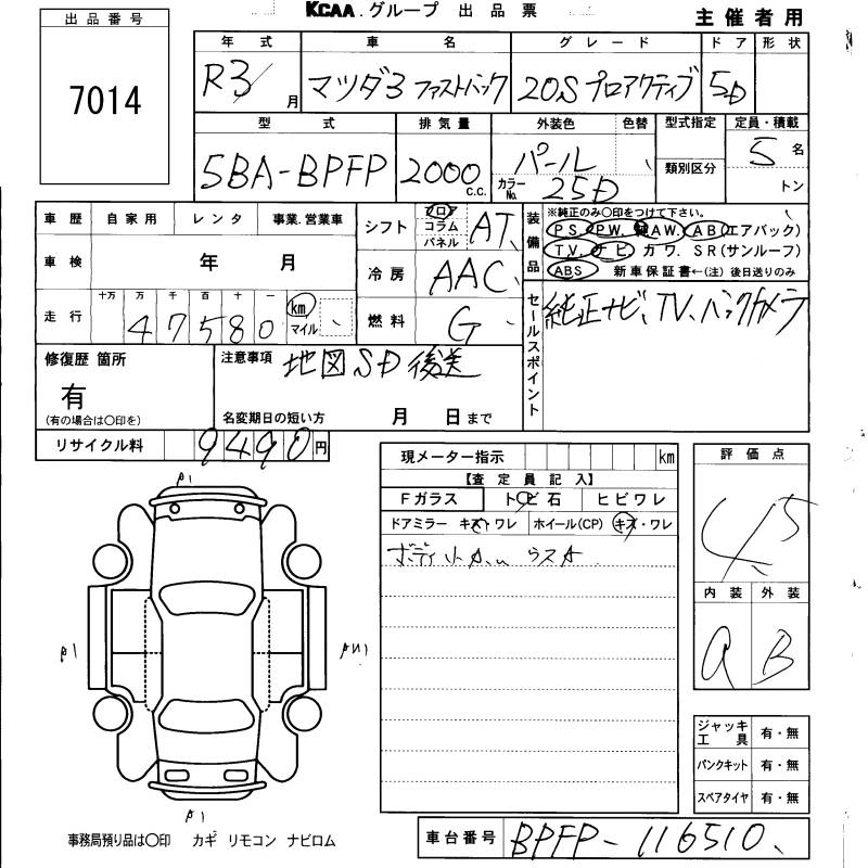 MAZDA MAZDA3 FASTBACK 2021 г., лот № 7014