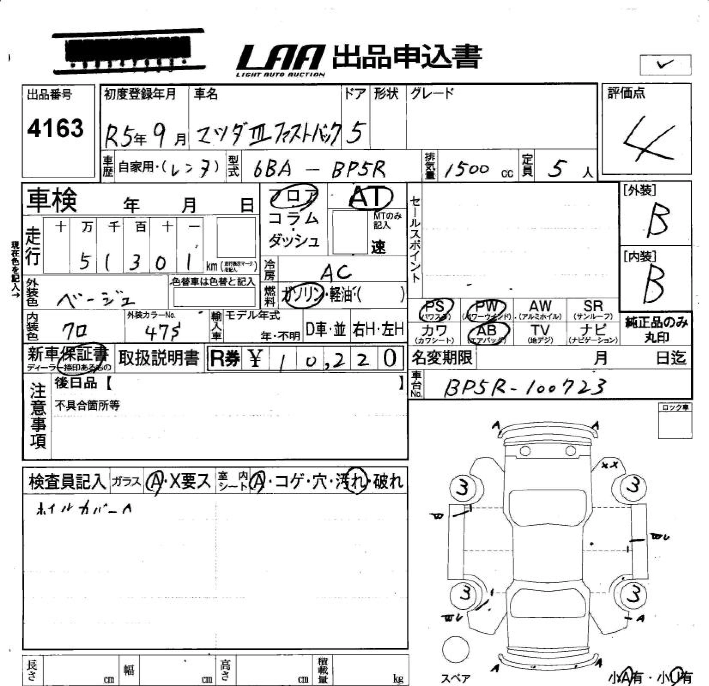 Статус не продан Лот 4163 Аукцион LAA Okayama Дата аукциона 23.01.2026