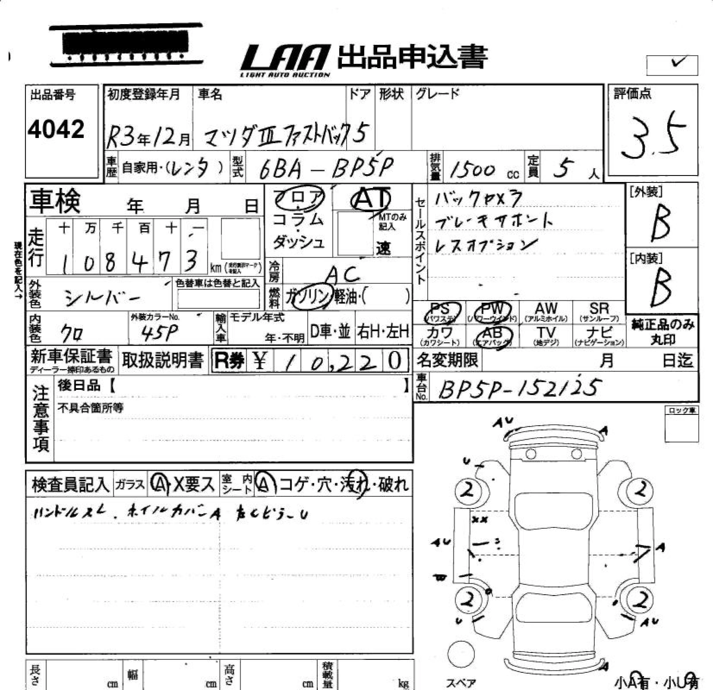 Статус не продан Лот 4042 Аукцион LAA Okayama Дата аукциона 23.01.2026