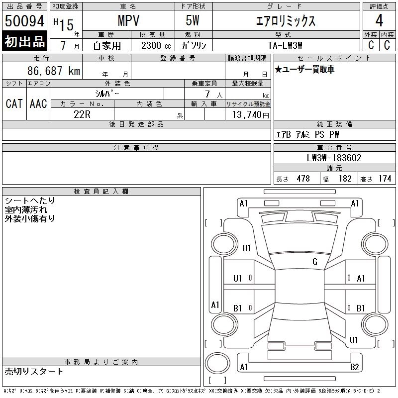 Год выпуска2003 Пробег 87 000 км КузовLW3W Комплектация AEROREMIX