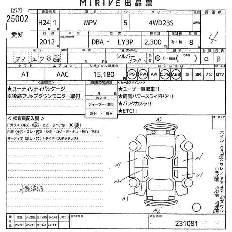 Статус продан Лот 25002 Аукцион MIRIVE Aichi Дата аукциона 06.02.2026