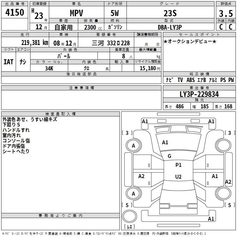 Статус выставлен на аукцион Лот 4150 Аукцион TAA Chubu Дата аукциона 12.03.2026