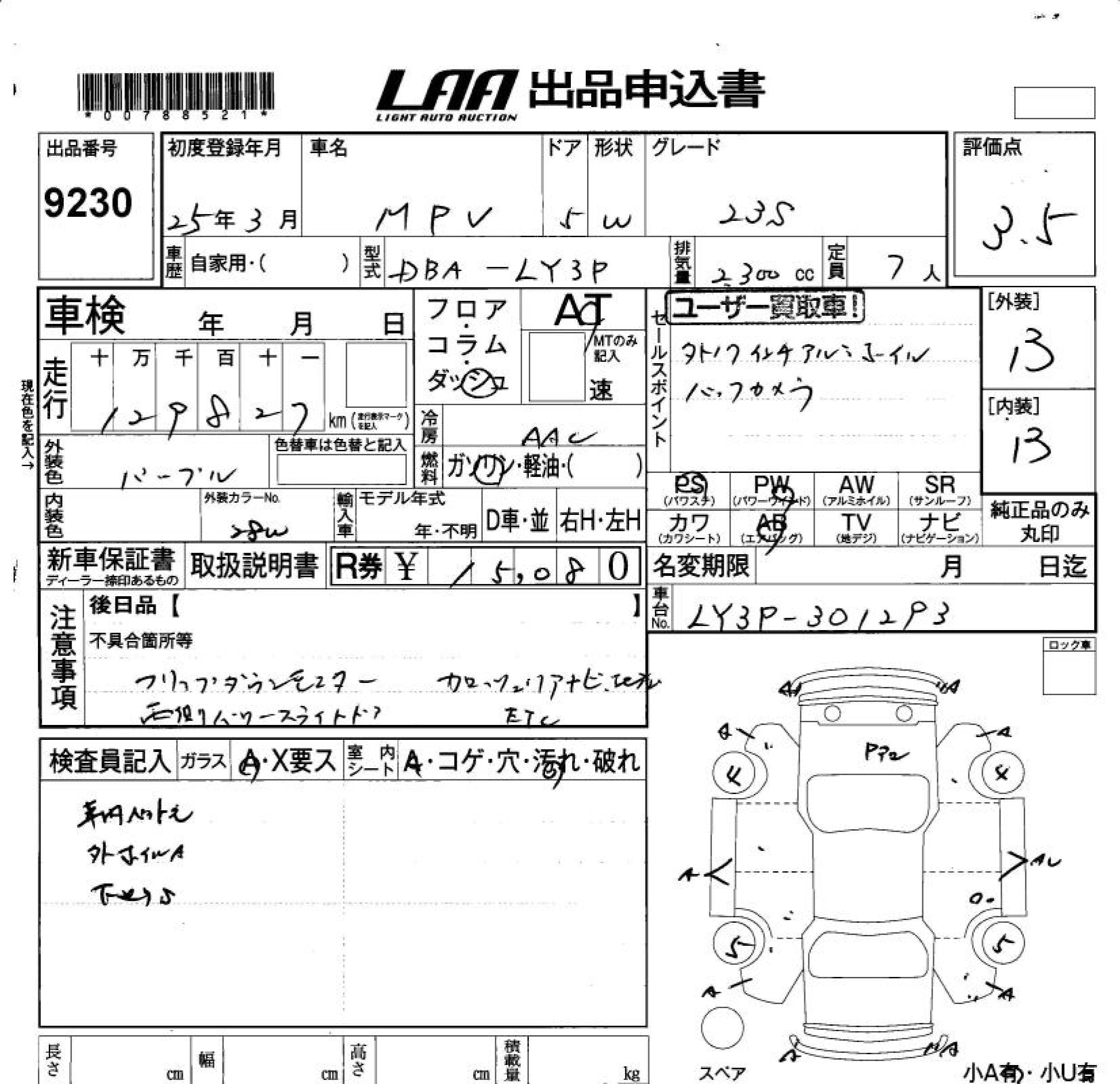 Статус продан Лот 9230 Аукцион LAA Okayama Дата аукциона 13.03.2026