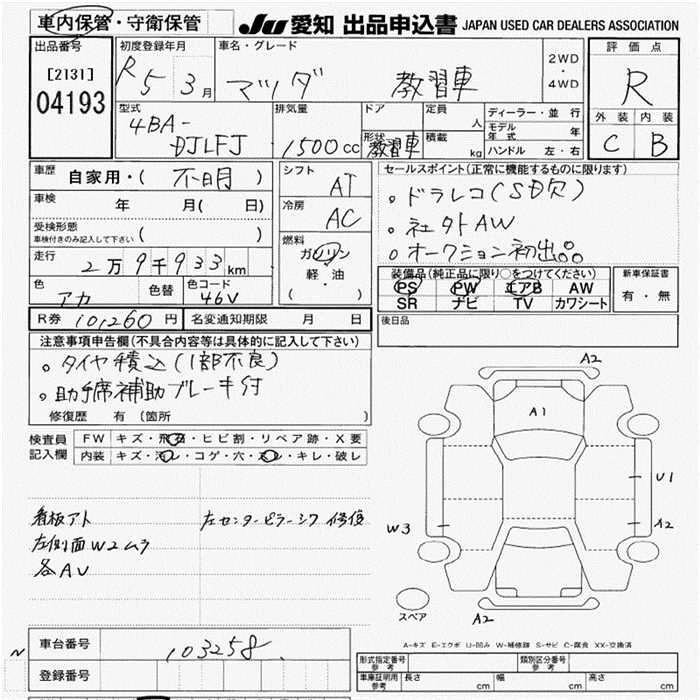 Статус выставлен на аукцион Лот 4193 Аукцион JU Aichi Дата аукциона 23.10.2025